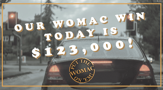 We recently represented a female client who was injured after the defendant driver failed to yield the right of way causing a collision. She underwent several cervical injections for her injury. We put the Womac on em and recovered $123,000.
