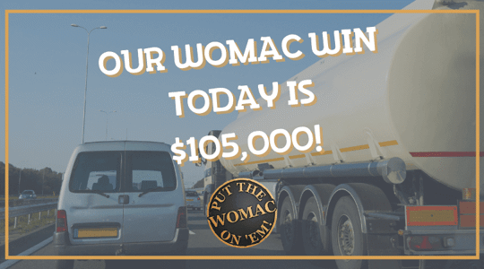 We recently represented a female client who was rear-ended in Jefferson Parish by an oil and gas truck. She suffered a herniated disc in her neck and received an epidural steroid injection. After symptom resolution, we settled the case. We put the Womac on em and recovered $105,000.